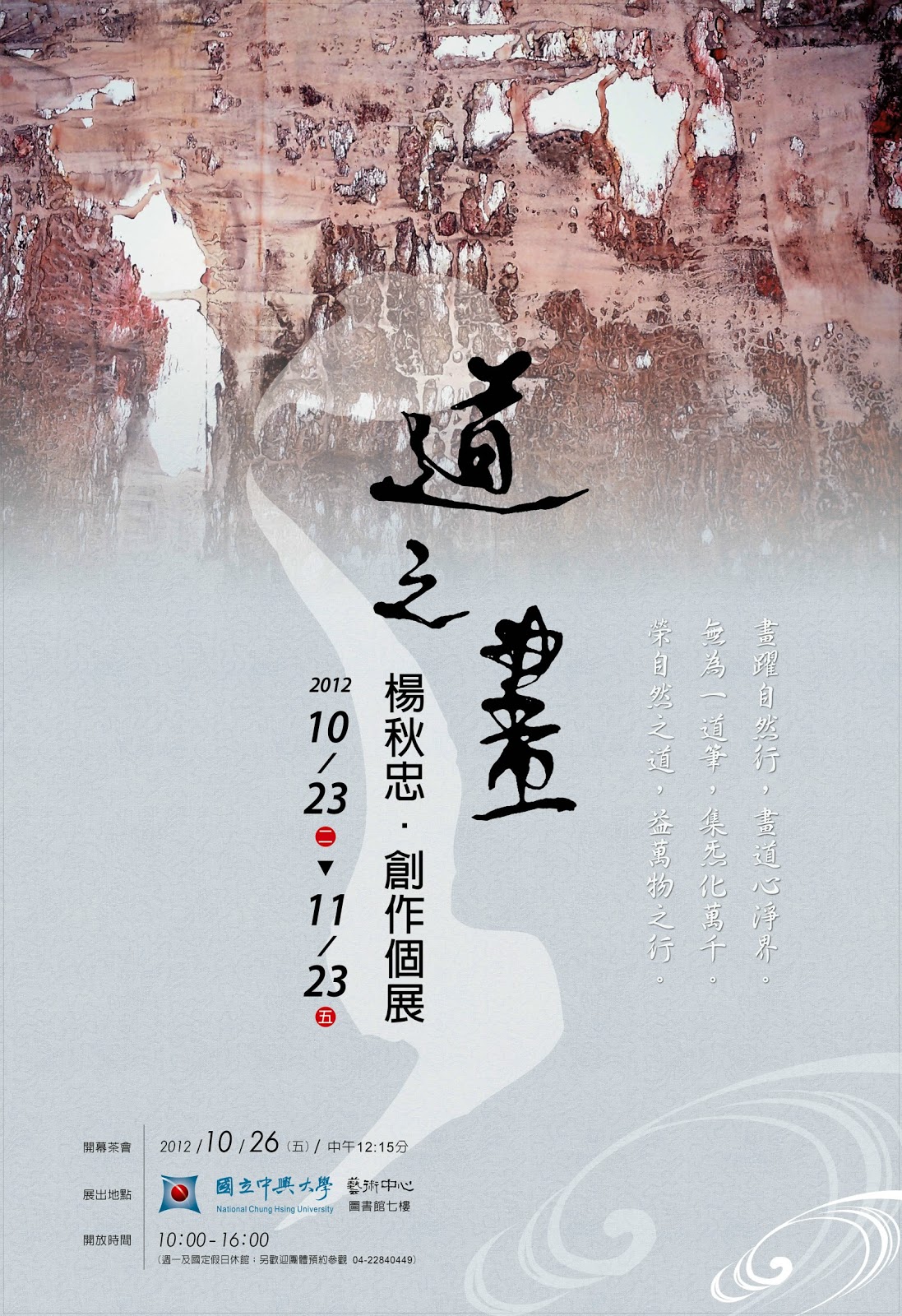 以下是引自國立中興大學的新聞介紹,歡迎有興趣的朋友到場觀賞「道之畫」: